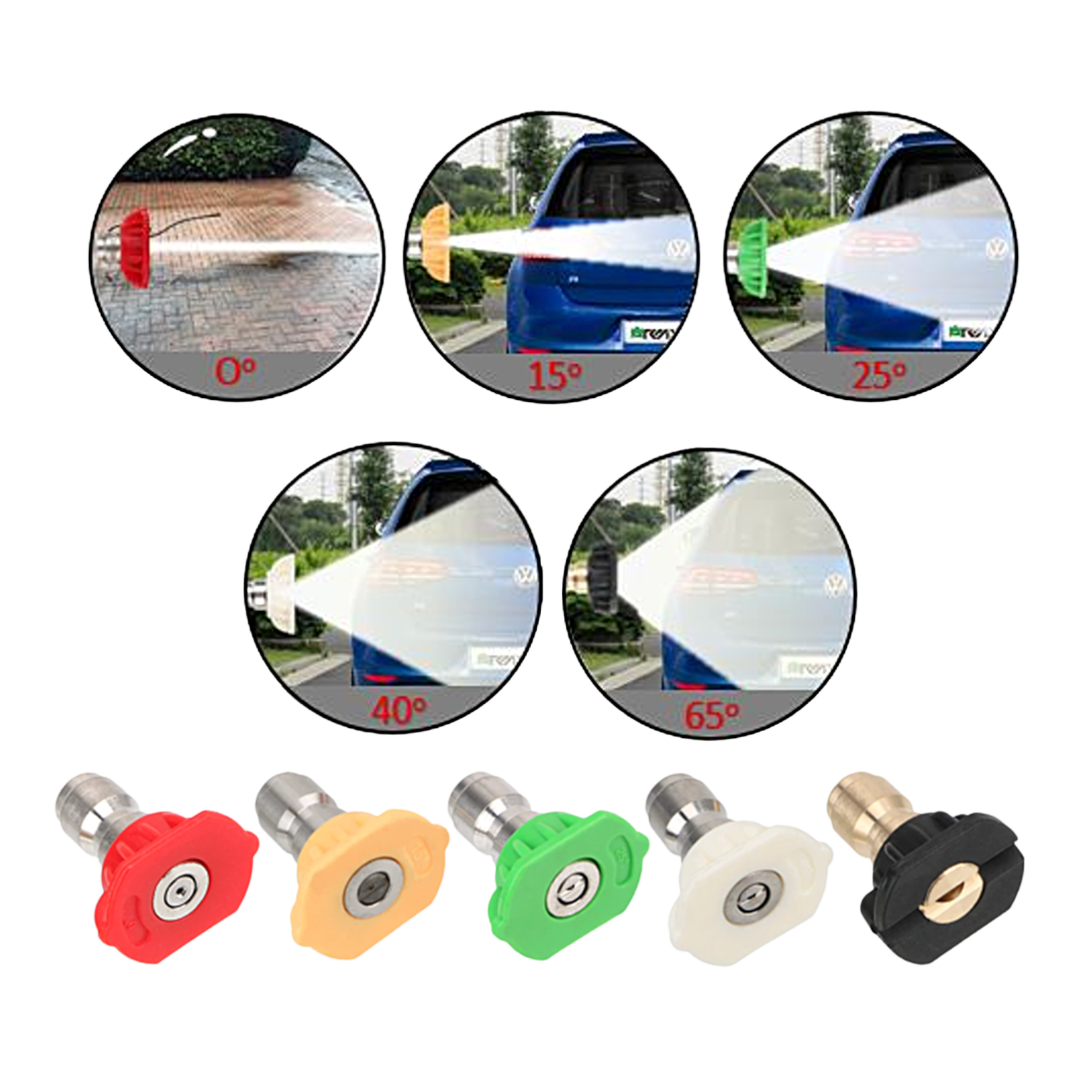 These quick release nozzles are made of high quality stainless steel, tough and durable (Black nozzle is made from brass). Each nozzle provides a different angle of spray to suit your needs, whether you are using this for car cleaning, gardening, cleaning patios etc.